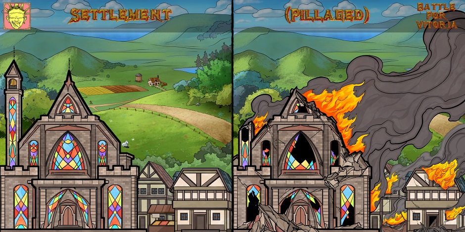 Within WarBonds: Battle For Vitoria, settlements are the key strategic control points for generating gold. Interaction with a settlement can occur in one of two ways: protection, or assault and pillage. Declaring protection of a settlement is considered an act of law. Players that are protecting one or more settlements will gain the listed amounts of gold per turn, based on the settlement's level, during the collect phase. A player can instead assault a settlement, which is an act of chaos and war. If a player's assault upon a settlement results in it becoming pillaged, the player will immediately acquire the listed spoils of gold and war tokens. During each act of protection or initial assault upon a settlement, units within the player's army will have their ideologies tested.